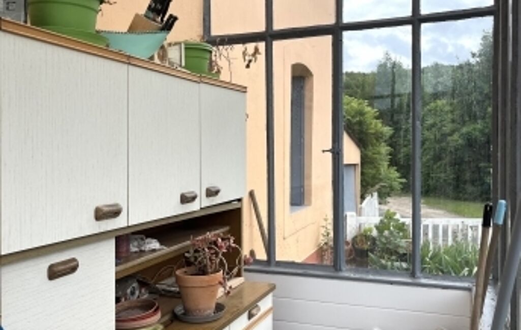 iad France - Aline DEROUSSEN vous propose: Ancienne maison de garde-barrière d'une superficie habitable de 75m2 située dans la commune des Forges-Saint-Bernard (à 5min de l'autoroute A5 et 10min de la ville de Bar/aube, proche de toutes les commodités), comprenant au rdc une véranda donnant sur le salon-séjour avec la présence d'un poêle à granulés, une cuisine, un dégagement avec une salle de bains et un wc séparé.
