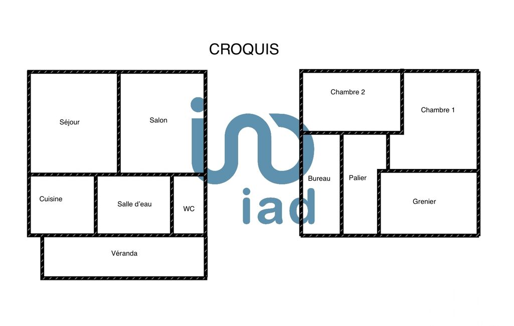 Au rez-de-chaussée, elle offre un séjour, un salon, une cuisine indépendante, une salle d’eau, des WC, et une véranda. À l’étage, deux chambres et un bureau, idéal comme chambre d’appoint ou espace télétravail.