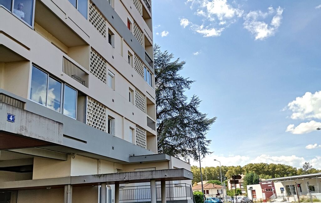 Niché au 6ème et dernier étage d'un immeuble avec ascenseur dans le quartier Léon Blum à Agen. Il comprend un espace de vie chaleureux, bien agencé et une vue dégagée sur les alentours.