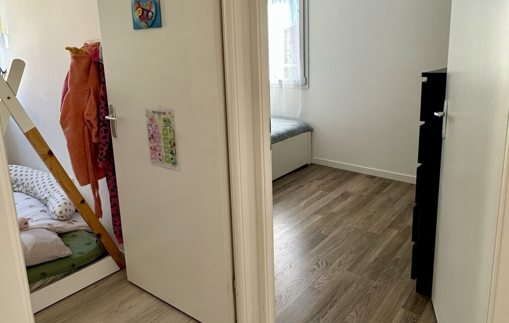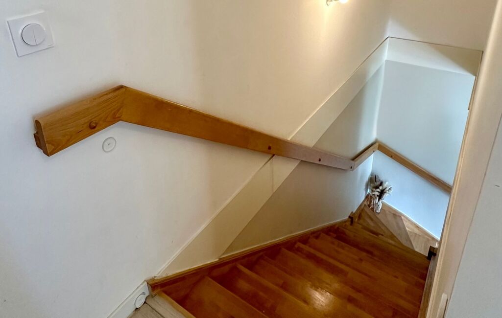 À l’étage, l’espace nuit comprend trois chambres, une salle de bain et un second WC, garantissant une bonne séparation entre vie de jour et de nuit.