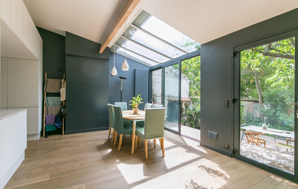 Bas Montreuil limite Vincennes. Superbe maison 8 pièces de 220m2 au sol avec un jardin d'environ 80m2. Elle se compose d'un grand double séjour, d'une cuisine, de 4 chambres dont une suite parentale et de deux salles de bains. Une cave la complète. Parking.
