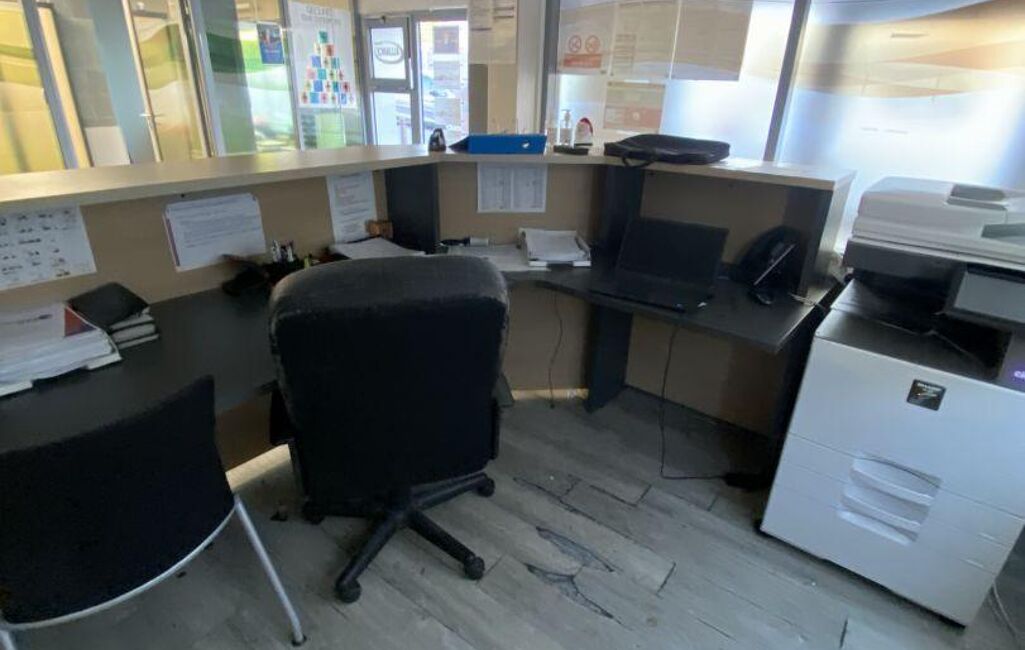 Plusieurs pièces, banque d’accueil, vitrines, coffre fort, local informatique, …..