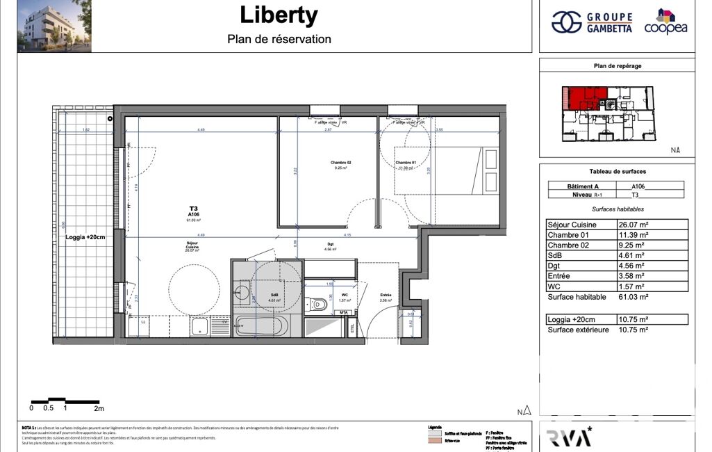 • Surface habitable : 61 m²