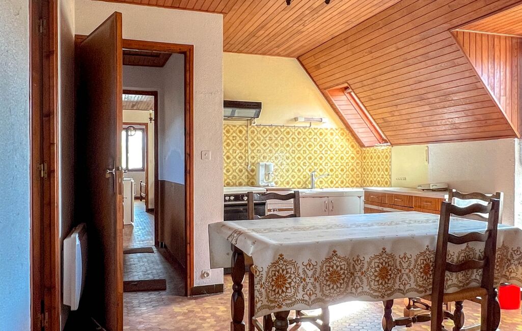 La maison principale, actuellement habitée par un locataire jusqu'à la fin d'année offre une surface habitable répartie sur trois niveaux. Elle dispose d’un salon, d’une cuisine, d’une salle d’eau et de trois chambres, le tout complété par un garage de 36 m² et une cour privative de 50 m². Bien que des travaux soient à prévoir, notamment sur l’isolation, la menuiserie en simple vitrage et la chaudière datant de 1992, ce bien constitue déjà une source de revenu locatif avec un loyer annuel de 3 840 €.