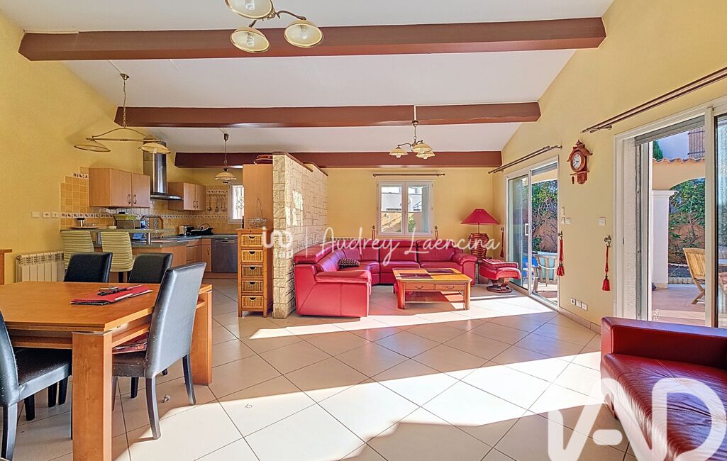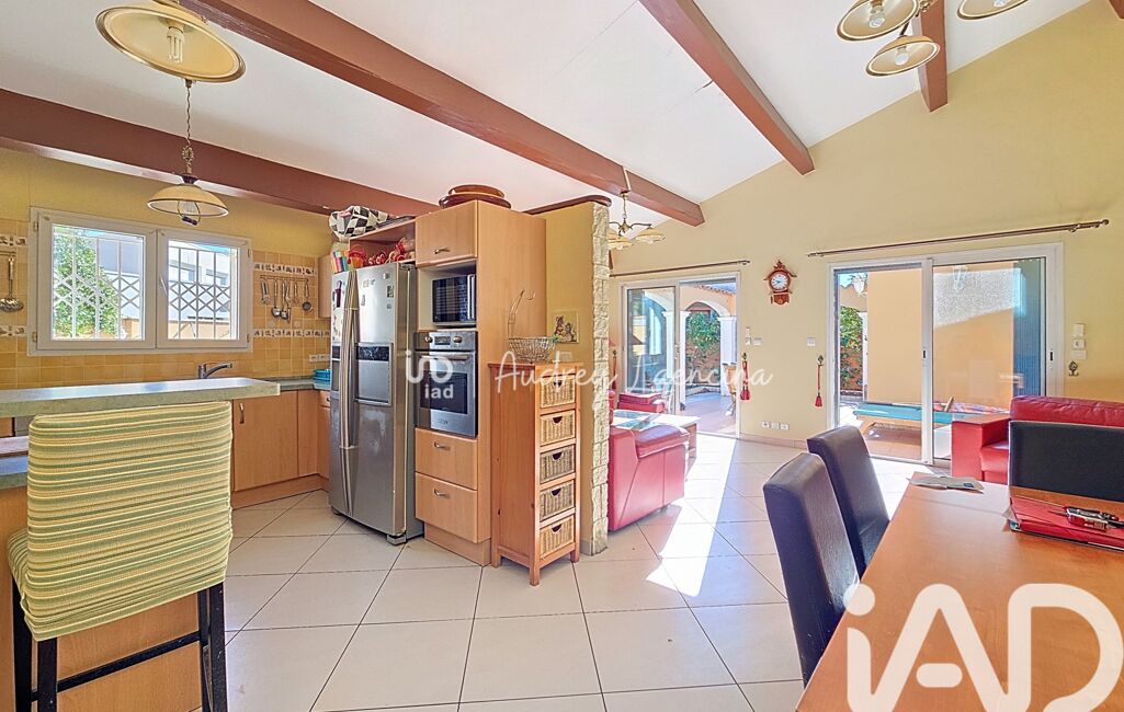 iad France - Audrey Laencina vous propose: Béziers – Quartier Montimaran – Villa de plain-pied 117 m² habitables, 3 chambres + 1 bureau – Garage - Carport - Piscine au sel – Parcelle 458 m² – Travaux toiture à prévoir