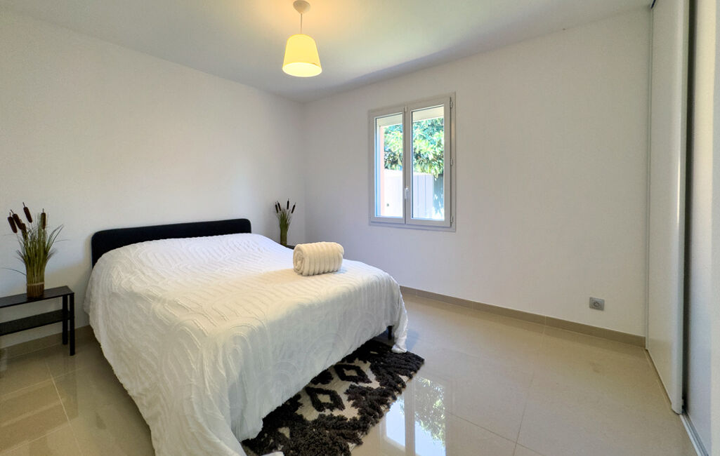 Cette maison, entièrement rénovée, offre un confort moderne, une cuisine équipée neuve, de grands volumes, la climatisation réversible, des volets roulants électriques, un système d'alarme récent, et des places de stationnement.