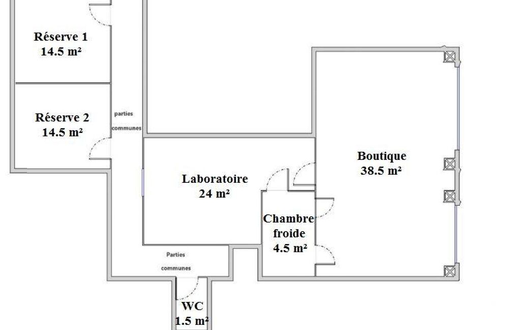 Composé d'un magasin de 38.5 m² environ, d'un laboratoire de 24 m² environ, d'une chambre froide de 4.5 m² environ, de deux réserves de 14.5 m² environ chacune et de toilettes, cet ensemble commercial pourrait retrouver sa fonction originelle de boucherie-charcuterie-traiteur.