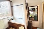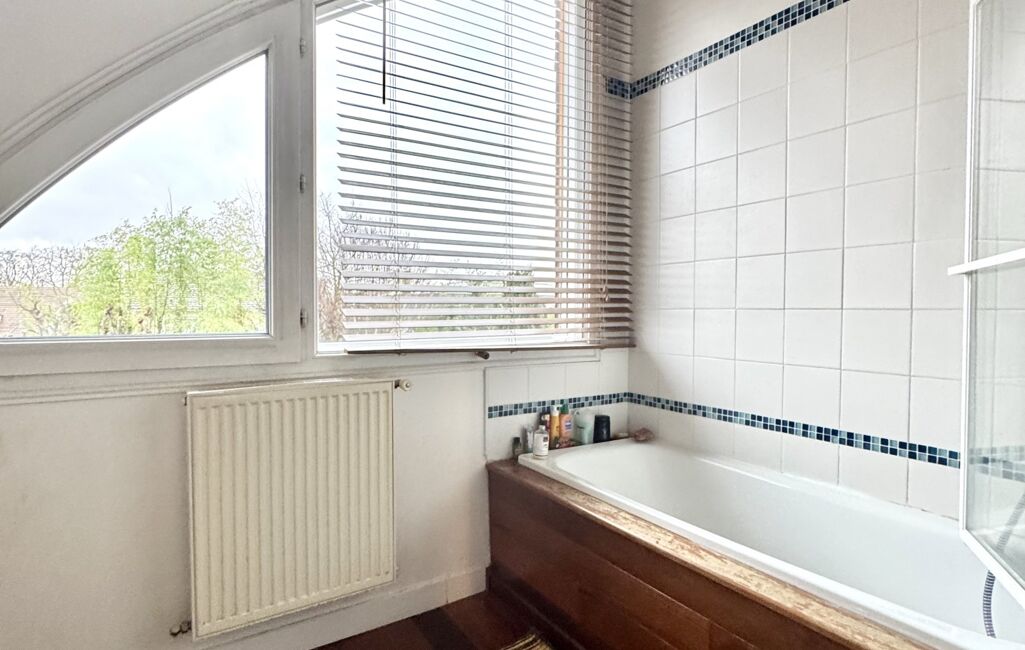 À l’étage, vous découvrirez trois chambres dotées d'une belle hauteur sous plafond et possédant de magnifiques fenêtres en demi-lune, équipées de stores électriques sur mesure sur deux d'entres elles (côté sud). Une salle de bains avec baignoire, wc et bidet.