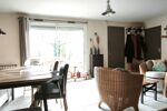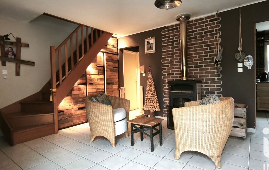 Au rez-de-chaussée, la maison offre une belle pièce de vie lumineuse avec salon/séjour chaleureux, équipée d’un poêle à bois, ouverte sur une cuisine aménagée et équipée. Cet espace de vie se prolonge agréablement vers une terrasse en bois, parfaite pour les repas en extérieur et les moments de détente.