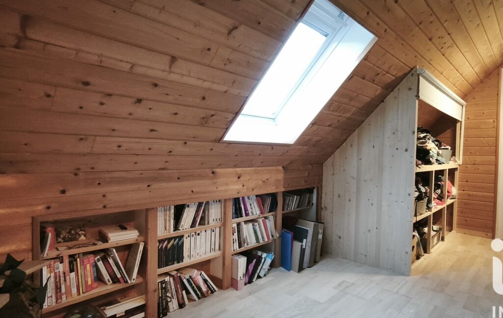 À l’étage, une mezzanine avec deux espaces de rangement, une chambre avec rangements, une seconde pièce pouvant servir de chambre supplémentaire (12 m² au sol), ainsi qu’une salle d’eau.