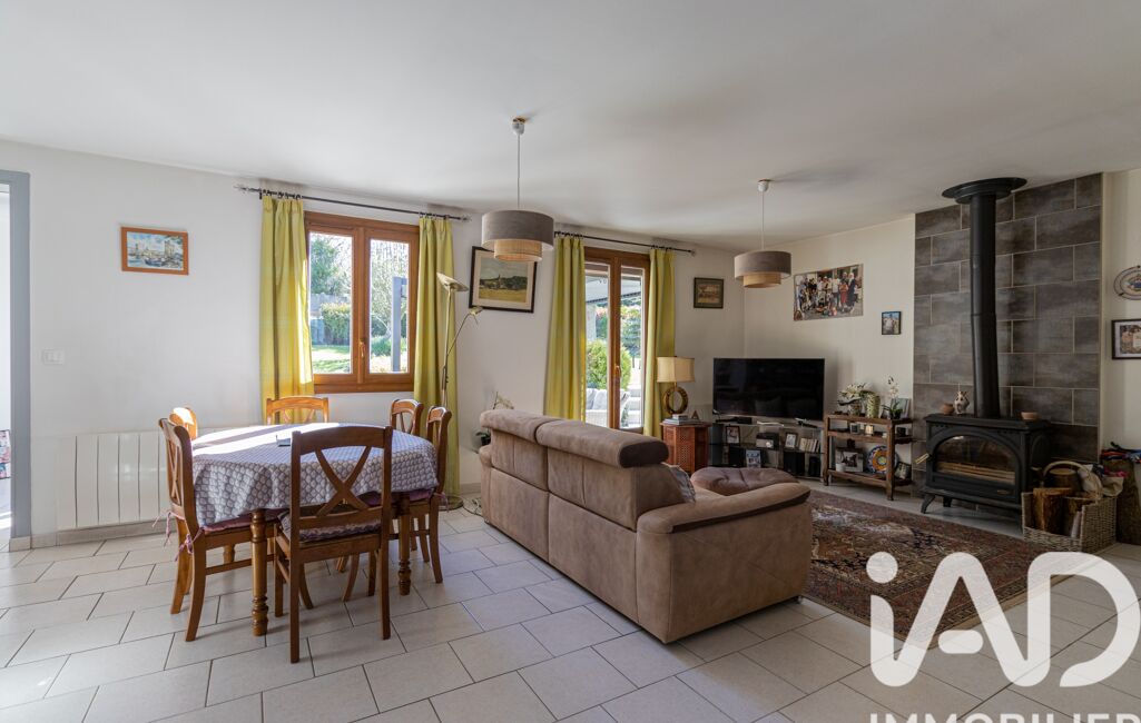 iad France - Emilie DELAPORTE vous propose: Située à Arnières-sur-Iton, commune desservie par le réseau Transurbain, cette maison de plain-pied, construite en 1990 et agrandie en 2012, développe une surface d’environ 105 m² sur un terrain clos et arboré de 747 m².