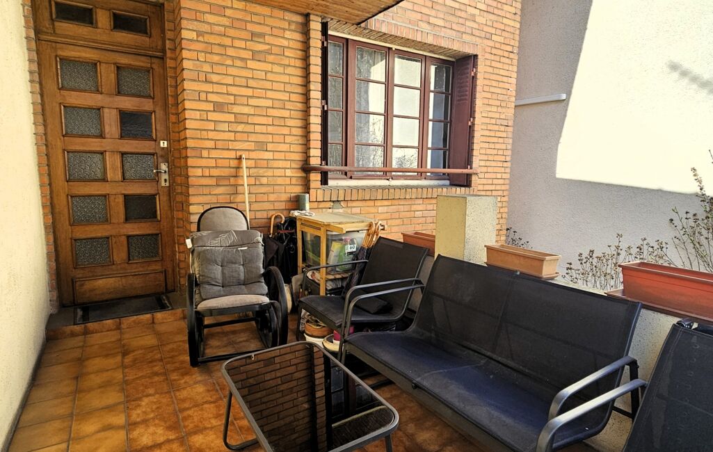 La maison profite, à l’avant, d’une petite COUR végétalisée exposée à l’Est et d’une TERRASSE « intimiste » : SURELEVEE et COUVERTE.