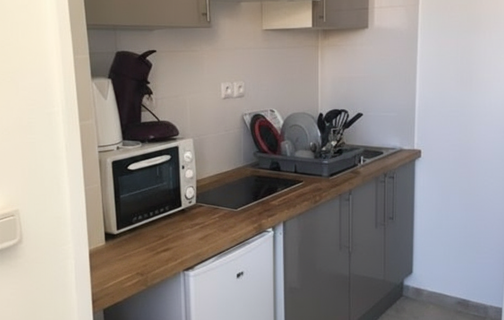 L'appartement se compose d'une pièce de vie lumineuse, aménagée avec goût, qui s'ouvre harmonieusement sur une cuisine moderne et entièrement équipée. Cet agencement optimise l'espace et crée une atmosphère conviviale, parfaite pour les moments de détente ou pour recevoir. La cuisine, fonctionnelle, dispose de tous les équipements nécessaires pour faciliter votre quotidien. Une salle de bain indépendante, également rénovée, complète ce logement, offrant confort et praticité.
