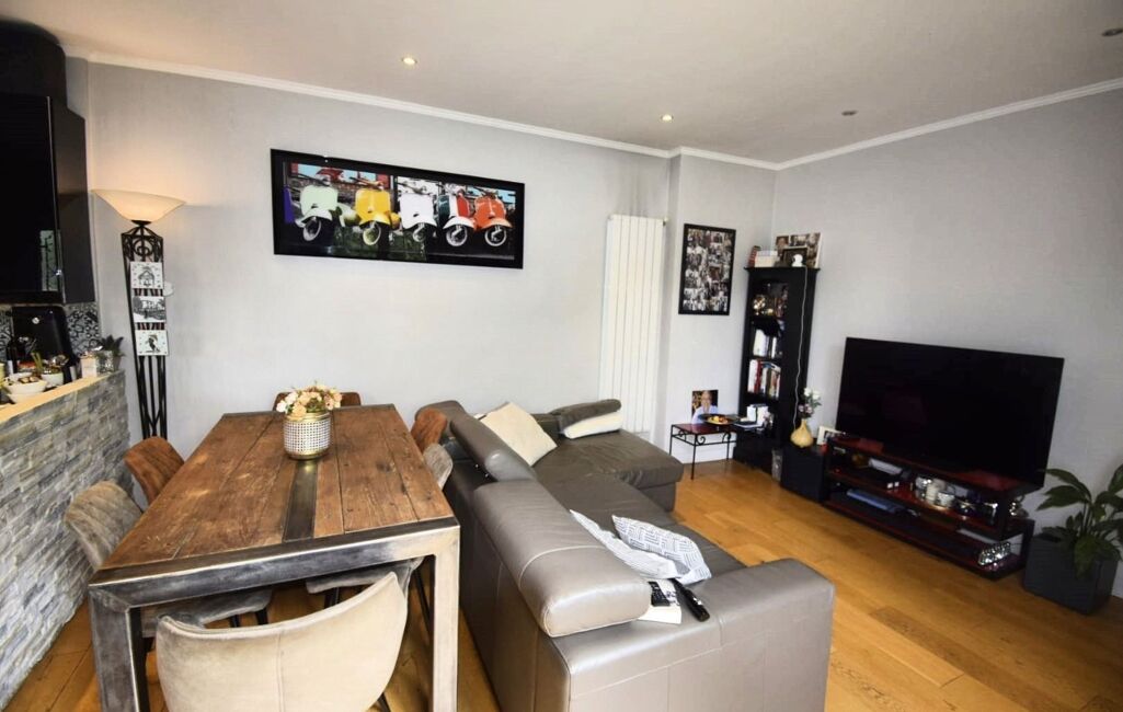 Salon lumineux avec cuisine ouverte