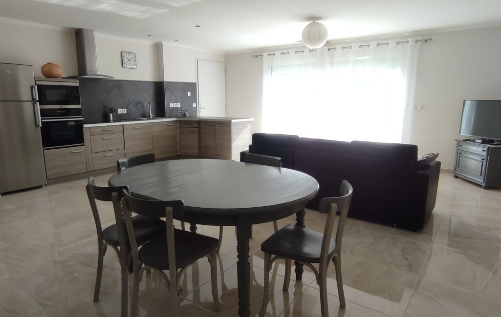 La maison d' une surface d'environ 76 m2 se compose de 2 chambres, d'une salle d'eau, d'un WC séparé, d'une cuisine ouverte sur un salon lumineux.