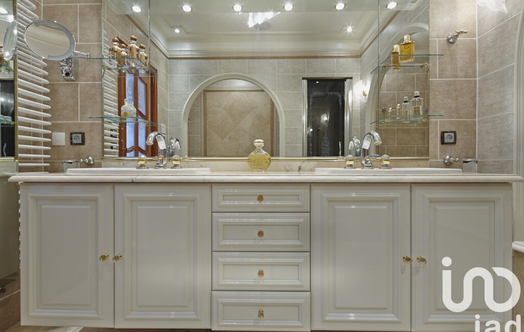 Le rez-de-chaussée se compose d’un vaste triple séjour de 100 m² avec moulures, corniches, sol en marbre, vitrail et cheminée du XVIIIe siècle. Cuisine dinatoire aménagée et équipée ouvrant sur les terrasses, cellier, salle d’eau invités et grande suite parentale avec salle de bains balnéo.