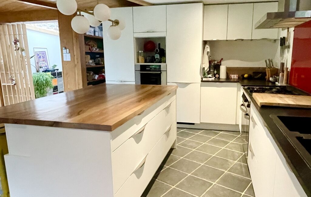 Une entrée accueillante ouvre sur une pièce de vie de plus de 70 m², baignée de lumière grâce à de larges ouvertures et un puits de lumière, offrant une belle continuité avec l’extérieur.