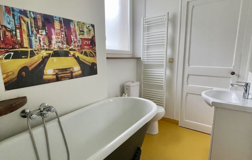 Une salle de bain avec WC, communicante avec les deux chambres.