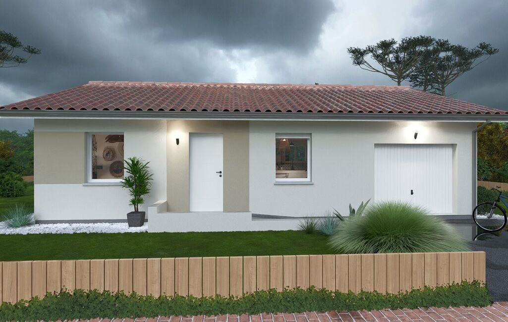 Ce plan de maison rectangulaire et sa toiture deux pans, un indémodable de l’architecture des maisons individuelles, est facile à implanter sur de nombreux terrains. C’est l’une des qualités qui en fait un plan idéal pour les retraités souhaitant un logement moins grand, pour les familles avec un enfant ou pour les investisseurs. Mais ce n’est pas la seule raison. Découvrez tous les avantages de ce plan de maison optimisée avec ses deux chambres et son garage. Le prix comprend le terrain, les frais de notaires, la construction prête à décorer.