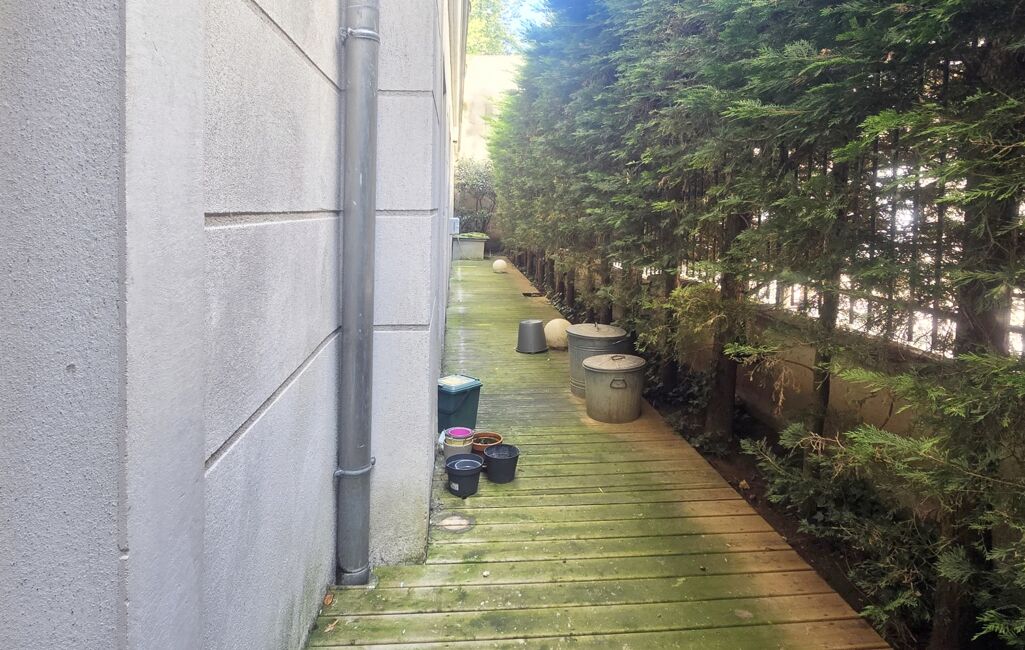 Chaque pièce dispose de sa propre porte-fenêtre avec volets roulants électriques, donnant accès aux terrasses côté cour ou côté passage piétonne. L’atmosphère est paisible, sécurisée, et l’on entend les oiseaux chanter.