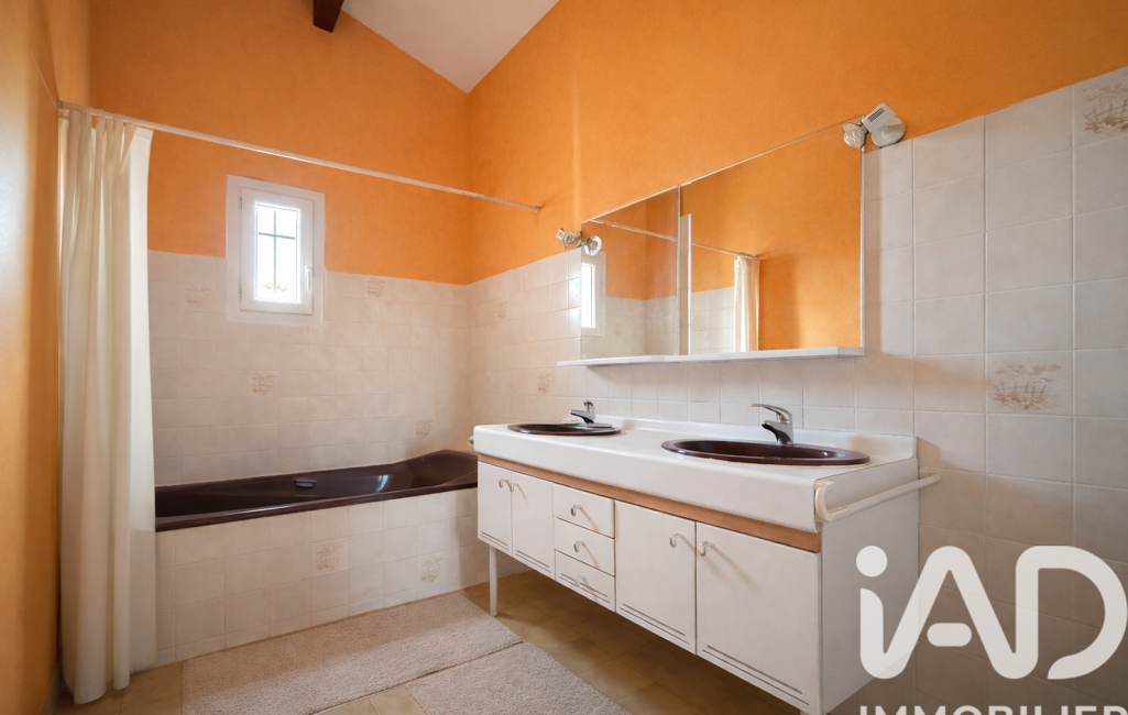 A l'étage, 2 chambres de 9 m2 et 13m2 , ainsi qu'une salle de bain avec baignoire et double vasque.