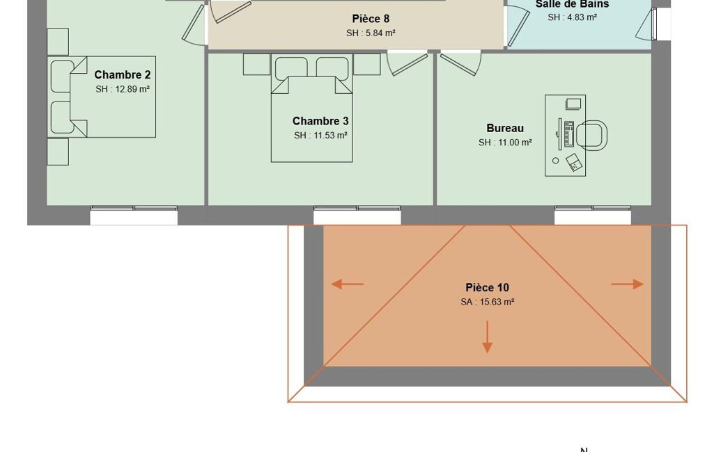 À l'étage :2 chambres et un bureau (ou 3 chambres selon vos besoins)