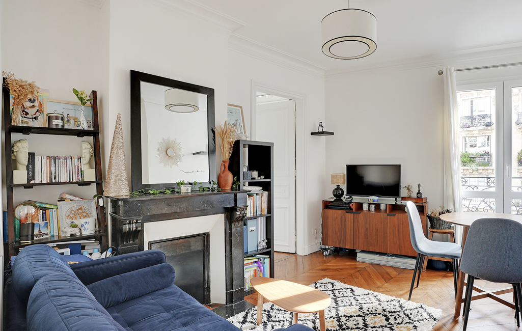 Appartement de 2 pièces de 40 m² Carrez, situé au 4ᵉ étage d'un immeuble ancien, à 16 minutes à pied de la ligne 1 et du RER A Vincennes.