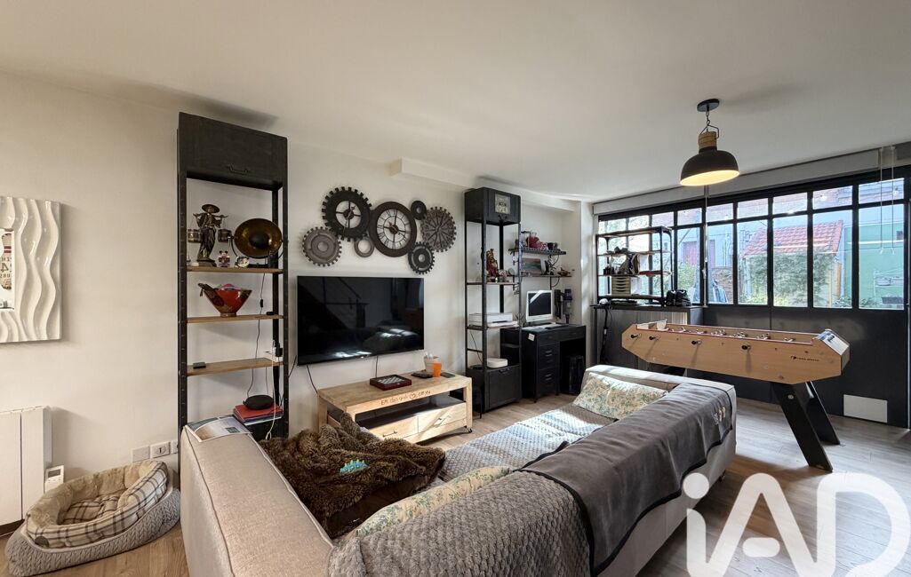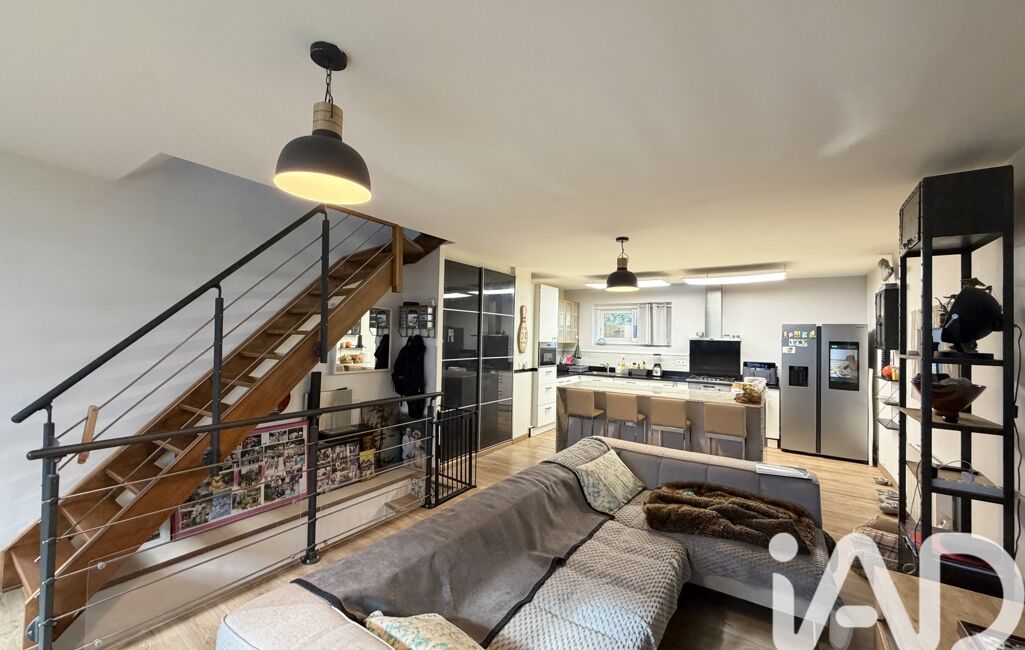 iad France - Christophe Renaudin vous propose: Maison de ville, 4 pièces avec sous-sol, de 84m2 habitables (100 utile) dans une petite copropriété, comprenant au rez-de-chaussée : grande pièce de vie de 40m2 avec une grande baie vitrée de style industrielle, cuisine entièrement aménagée et équipée, et un grand placard.