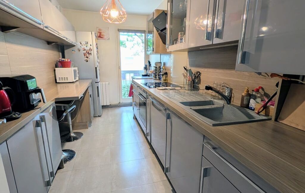 En excellent état cet appartement vous offre: entrée avec placard, salon salle à manger (possibilité 4eme chambre) donnant sur terrasse exposé sud, cuisine équipée et aménagée, 3 chambres dont 2 donnant sur le balcon, salle d'eau, buanderie, wc séparé.