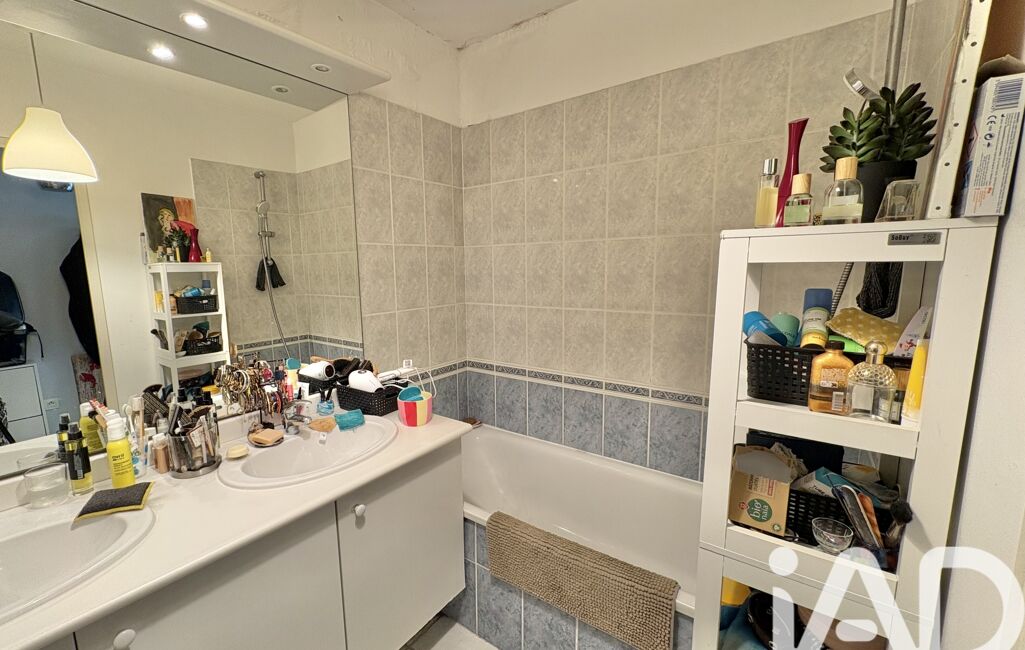 La salle de bain est équipée d’une double vasque, apportant confort et praticité au quotidien, ainsi qu’un WC indépendant.