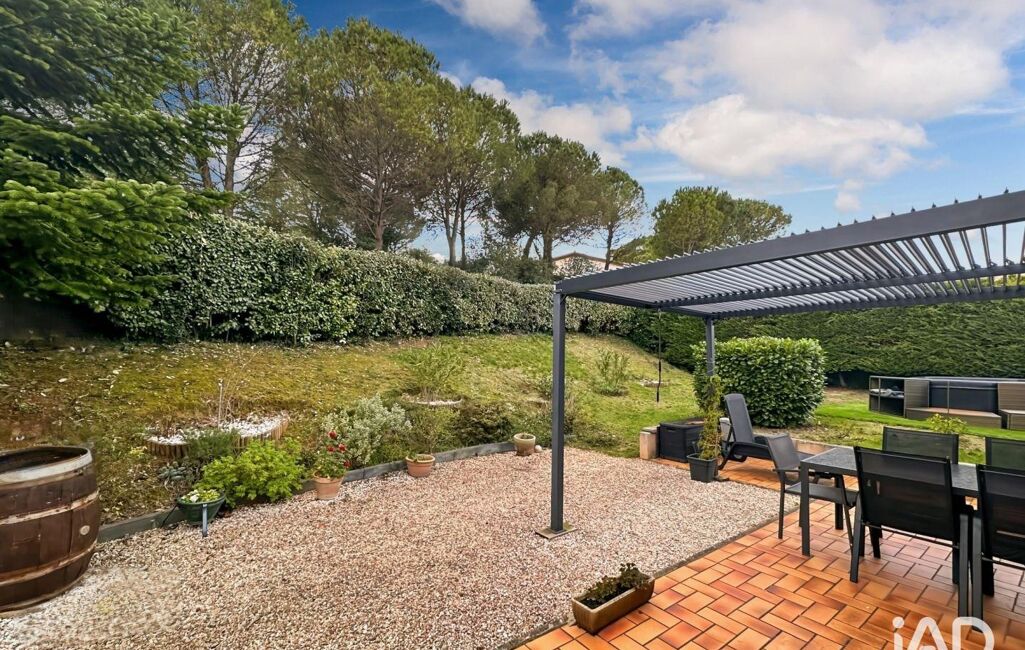 A l'arrière de la maison, on dispose d'une terrasse avec pergola bioclimatique donnant sur un jardin ainsi qu'un espace jacuzzi sans aucun vis-à-vis.