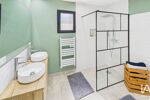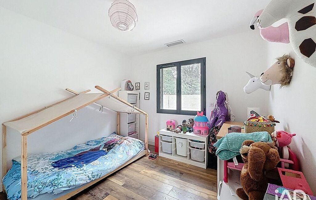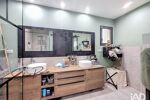 L’aile parentale propose un véritable cocon?: une suite de 33?m² environ avec ses dressings sur mesure et sa salle d’eau privative. L’autre aile est réservée à la famille ou aux amis, avec trois chambres dotées de rangements, une salle de bains mixant baignoire et douche à l’italienne, et des toilettes séparées. Chacun y trouve son espace, sans empiéter sur celui des autres.