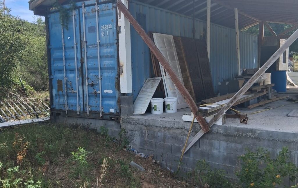 Présence sur le terrain d une citerne, d un conteneur de 40' recouvert, terrain entièrement clôturé en partie de mur en pierre avec deux entrée, ancien permis de construction autorisait pour 3 logements d une surface de 520 m².