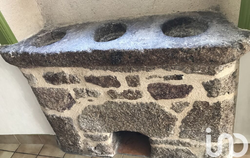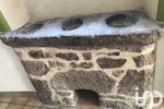 Une cuisine conviviale ouverte sur une salle à manger avec poêle à bois et un remarquable potager en pierres, témoignage de l’ancienneté de la maison,