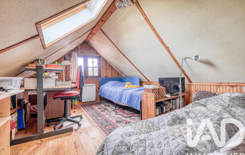 Au niveau supérieur, en mezzanine, on dispose d'un espace mansardé à usage de chambre ou bureau.