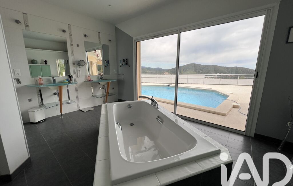 iad France - Nathalie Mogensen vous propose: Au cOEur du très recherché Domaine sécurisé du Golf de Valcros à La Londe-les-Maures, cette villa d’architecte offre un cadre de vie rare, entre mer Méditerranée et nature préservée.