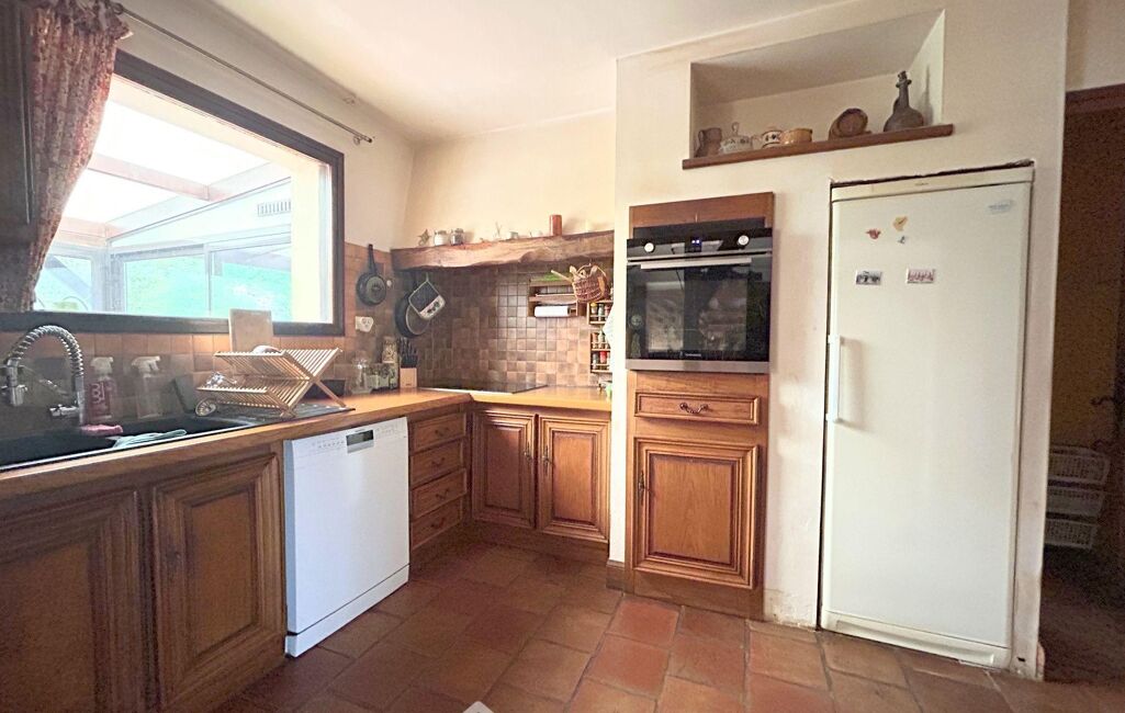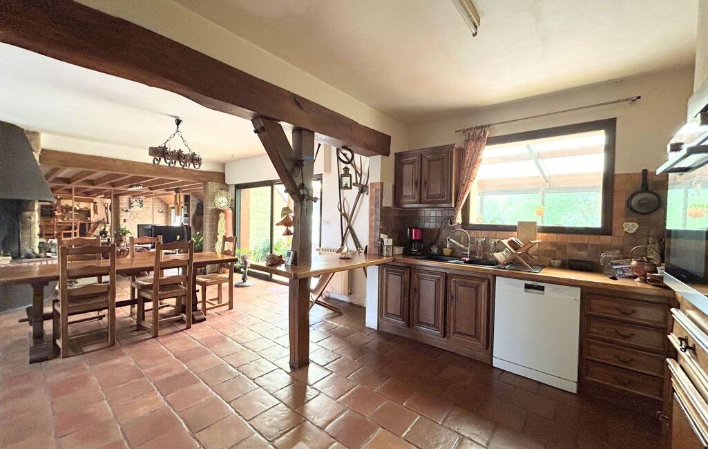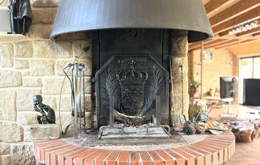 Prestations : fenêtres aluminium double vitrage avec volets roulants manuels et électriques, toiture en ardoise, fibre optique, tout-à-l'égout, cheminée avec foyer ouvert et double foyer, chaudière fioul, ballon d'eau chaude.