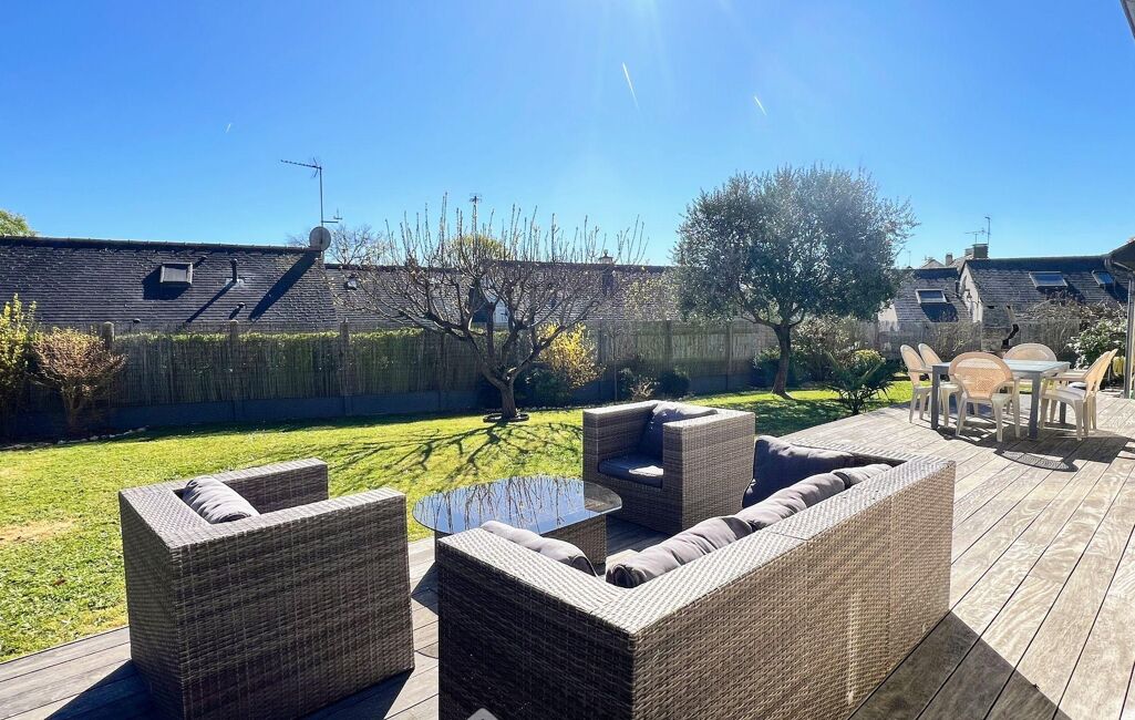 À l'extérieur, vous profiterez d'une belle terrasse et d'un jardin arboré, paysagé et sans vis-à-vis, un lieu parfait pour installer un potager, un espace de jeux ou simplement savourer les beaux jours en toute tranquillité.