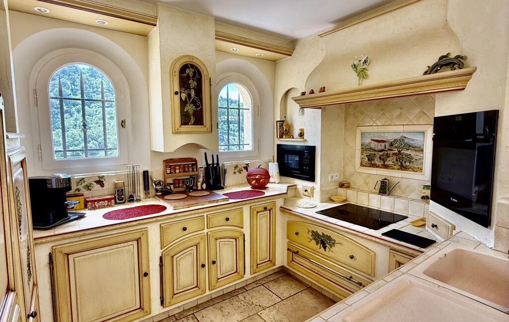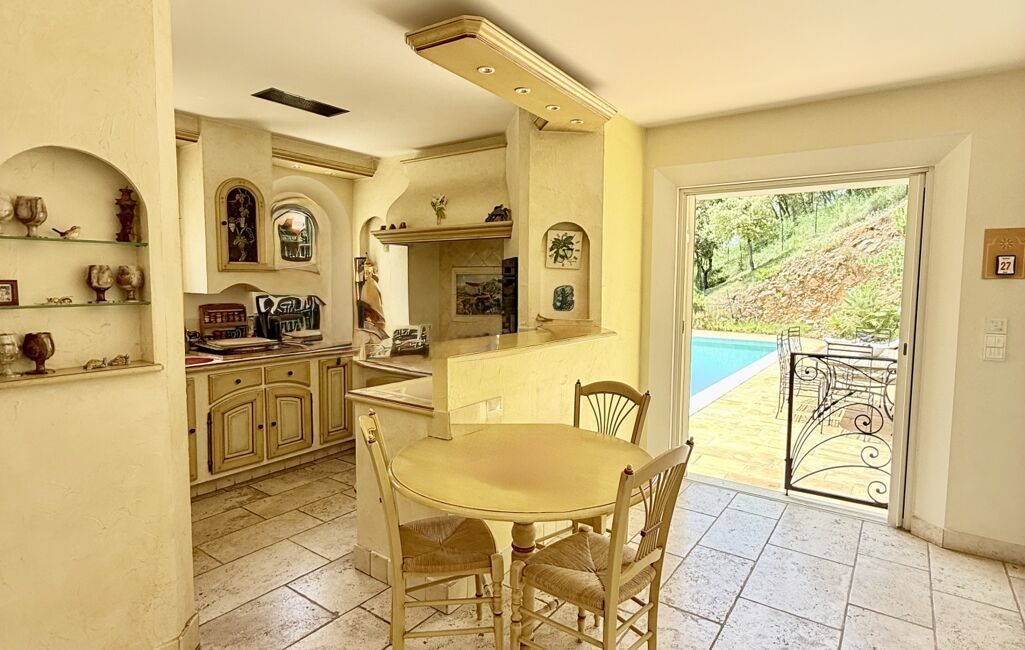 La cuisine, entièrement aménagée et équipée, bénéficie d’un accès direct à l’espace piscine, parfaite pour des repas d’été ou des moments de convivialité en famille ou entre amis.