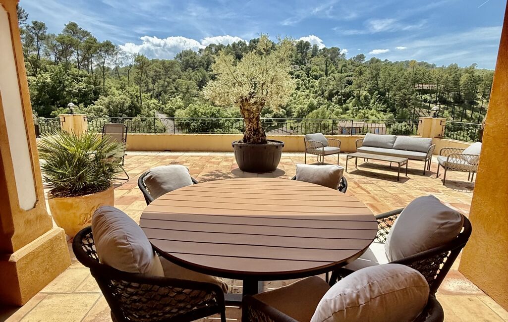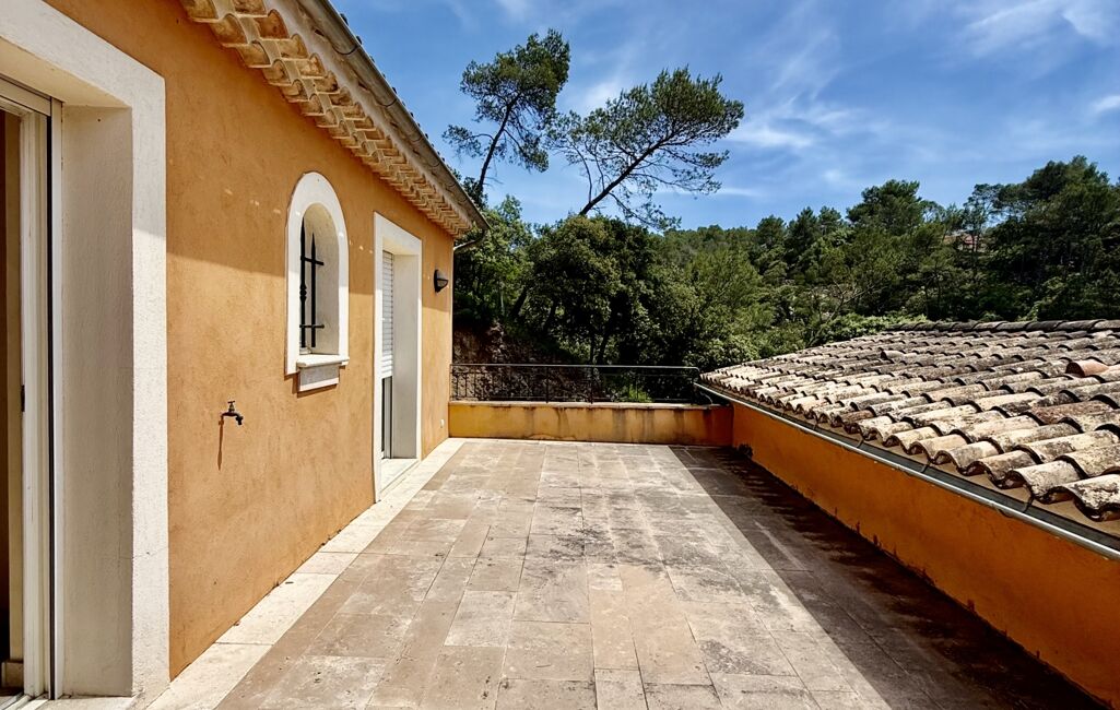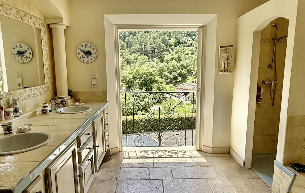 Dès l’entrée, le charme opère : volumes généreux, poutres apparentes, matériaux nobles et lumière omniprésente. Le vaste séjour s’ouvre sur une grande terrasse plein sud grâce à de superbes baies à galandages, créant une douce transition entre intérieur et extérieur, l’art de vivre provençal dans toute sa splendeur.