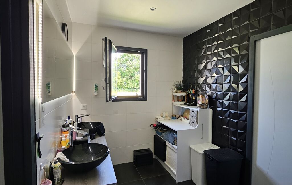 La maison se compose d'un séjour avec une cuisine ouverte entièrement équipée de 54m², 3 chambres spacieuses, dont 1 suite parentale avec dressing et salle d'eau. Le second côté nuit offre 2 chambres et une salle de bain.