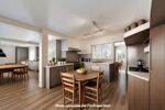 Partant d'une architecture réthaise contemporaine, la maison est distribuée d'une façon peu courante, mais pourtant très pertinente. En effet, trois espaces nuits sont répartis autour des pièces de vie.