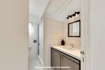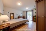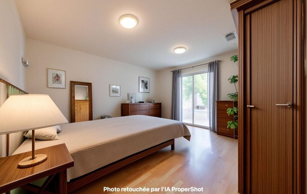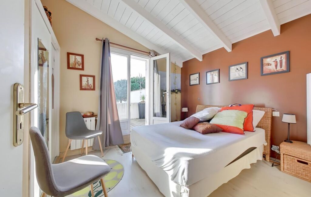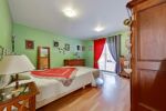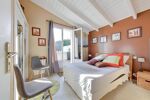 La suite parentale, située au rez-de-chaussée avec double accès, offre une grande chambre, un dressing, et une grande salle de bains avec baignoire, une douche, mais aussi un WC.