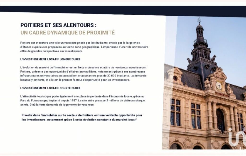 iad France - Elodie Panteix (06 29 02 43 54) vous propose : Construction d'une résidence Neuve sur le campus universitaire de proche du CHU de POITIERS avec une livraison prévue pour le 2ème trimestre 2025.