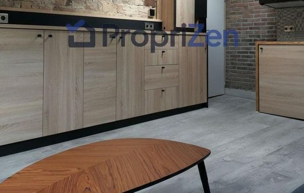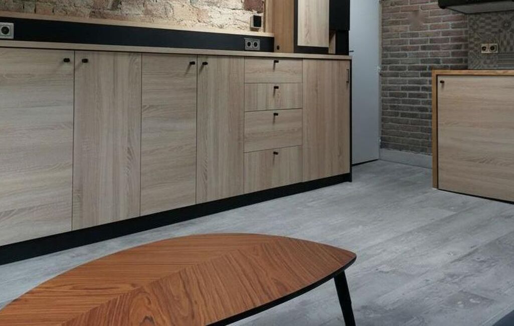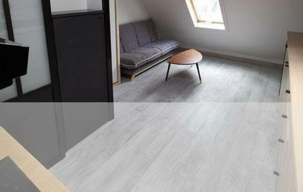 L'appartement se compose d'une pièce principale lumineuse et optimisée. Cette pièce est aménagée avec une bibliothèque intégrée, des placards de rangement et une penderie, maximisant l'espace disponible. Un clic-clac et une table basse complètent l'ameublement, offrant un espace de vie confortable et modulable. La rénovation a mis l'accent sur la qualité des matériaux et l'esthétique, créant une atmosphère accueillante et contemporaine.