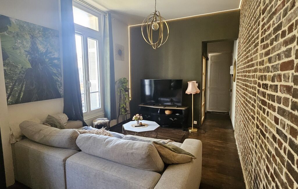 iad France - Dimitri Dore vous propose: IDEALEMENT SITUE, SECTEUR ROUEN CENTRE - PLACE SAINT-MARC, ce magnifique appartement entièrement rénové de 73M2 environ situé au 1er étage d’une petite copropriété sécurisée, au style haussmannien, sans ascenseur se compose d'une entrée, un grand salon, un séjour, une cuisine séparée aménagée/équipée, une SUITE PARENTALE avec un DRESSING et une pièce d'eau privative, une chambre ou BUREAUX, une salle d'eau avec Wc. 3 Caves. Garage à la location possible. Fibre optique. Chauffage et production d'eau chaude électrique compteur individuel. Taxes Foncières 1519€. Charges annuels 1127€. A VOIR RAPIDEMENT !