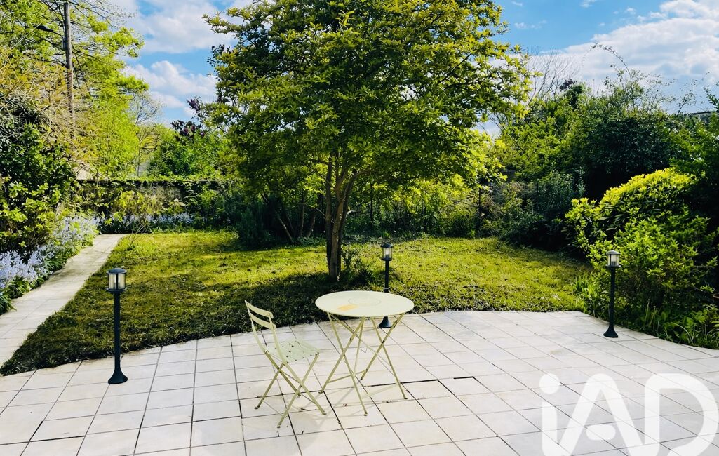 Le jardin arboré entièrement clos (à l'arrière de la maison) possède une belle terrasse exposée Sud, sans aucun vis à vis.