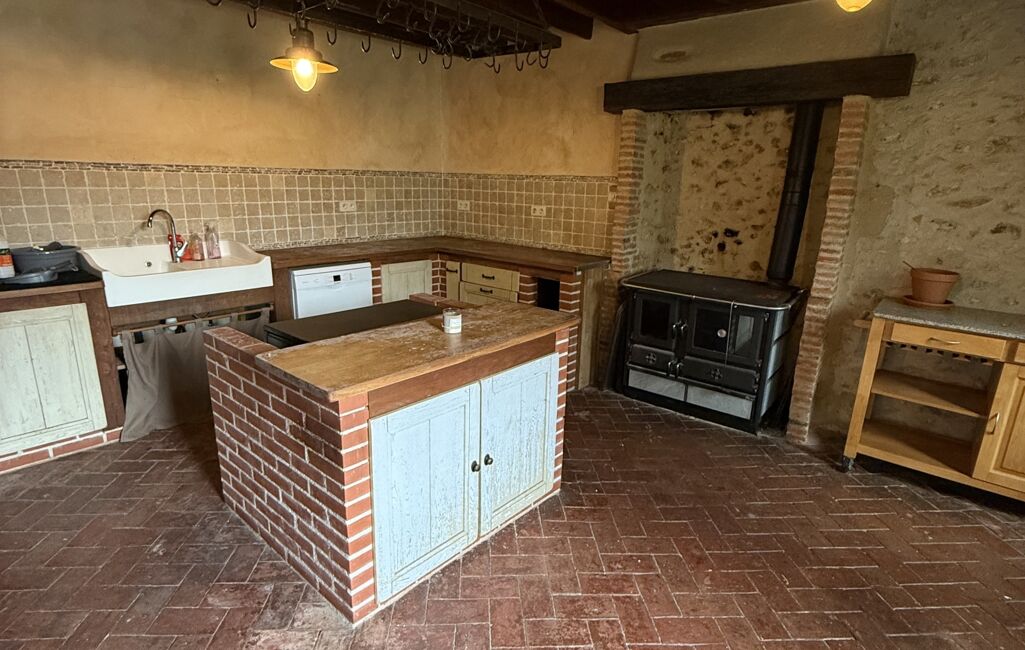 Cuisine indépendante avec une belle cuisinière à bois