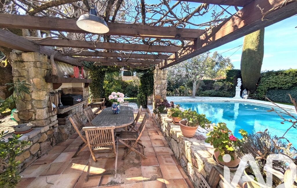 iad France - Thierry Barrau vous propose: Au sein d’un quartier résidentiel de Mougins, et à proximité de Cannes, Mas Provençal de 179m² exposée Sud, implantée sur un terrain arboré et plat de 1862m² agrémenté d’une piscine de 9 X 5.5M. La Propriété très typique possède beaucoup de charme tant sur les extérieurs qu’à l’intérieur.