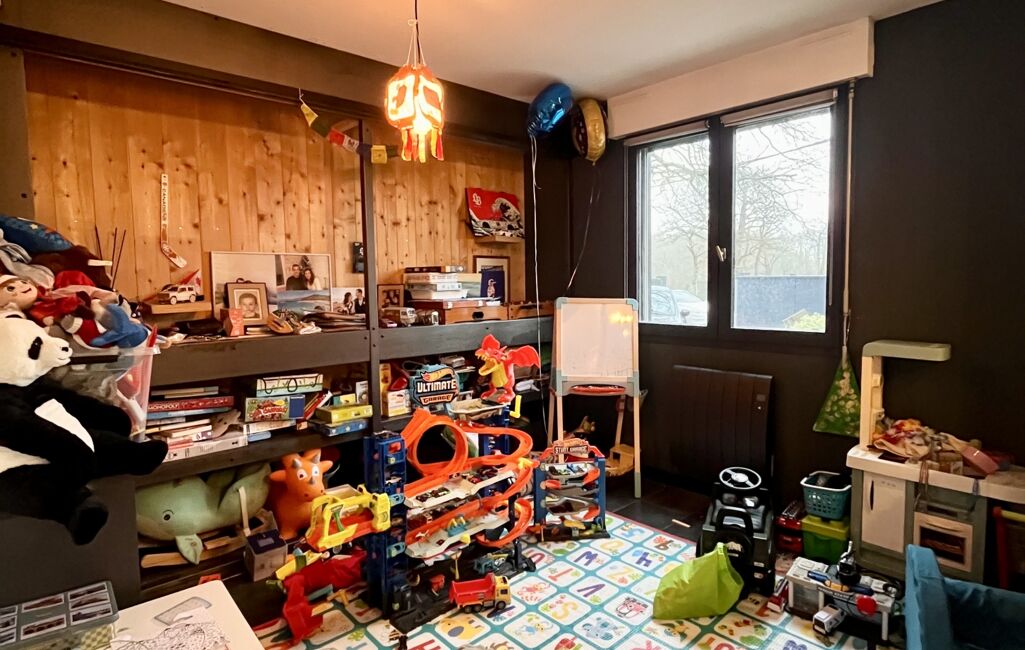 Au rez-de-chaussée, vous serez accueilli par une entrée lumineuse desservant un pallier donnant accès à un vaste garage de 50 m2 et un accès à un agréable séjour ouvert sur une cuisine entièrement équipée et rénovée. Un WC ainsi qu'une salle de jeux pour enfant.